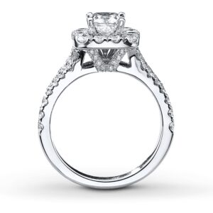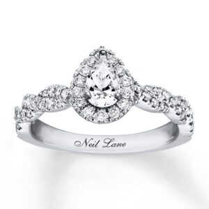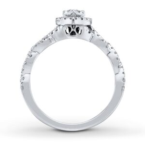 Unforgettable and whimsical, this romantic diamond engagement ring is a perfect way to show your everlasting love. The ring is styled in 10K white gold and features an enchanting emerald-cut aquamarine gemstone in the center. Sparkling round and baguette-cut diamonds perfectly frame the sides of the aquamarine gemstone and grace the band to give the ring a total diamond weight of 1/2 carat. The ring is from the Now and Forever? bridal collection.