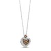 This gorgeous necklace from Le Vian features a heart-shaped pendant with rich Chocolate Diamonds at its center and one that sparkles above. A frame of decadent Nude Diamonds finishes the look. The 14K Vanilla Gold pendant sways from an 18-inch cable chain and secures with a lobster clasp. The necklace has a total diamond weight of 1/4 carat. Le Vian . Discover the Legend.