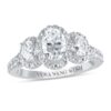 This spectacular three-stone engagement ring from the Vera Wang WISH Collection features dazzling oval diamonds haloed by round diamonds. Even more round diamonds add brilliance to the band, bringing the total diamond weight to 1 3/4 carats. Princess-cut sapphires, the signature of the collection and a symbol of faithfulness and everlasting love, are set into the ring's bezel. The 14K white gold ring is a brilliant beginning to your romantic love story. Exclusively available at Jared? the Galleria of Jewelry.