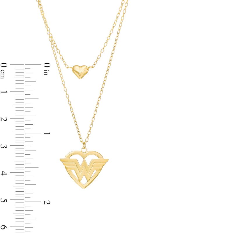 Wonder Woman? Collection Heart with Logo and Mini Puff Heart Double Strand Necklace in 10K Gold – 21.5″